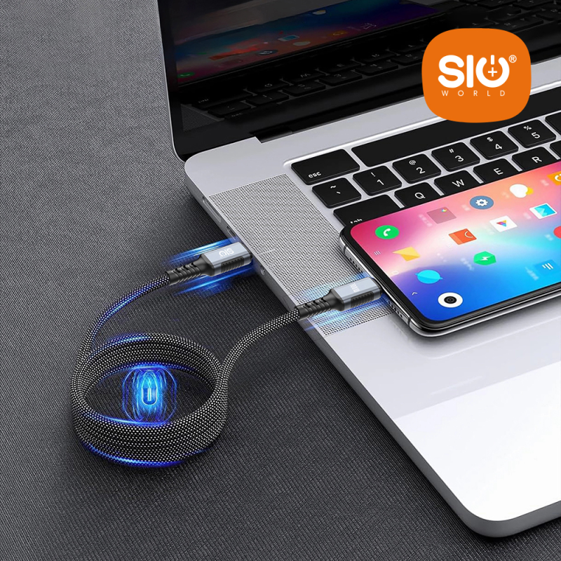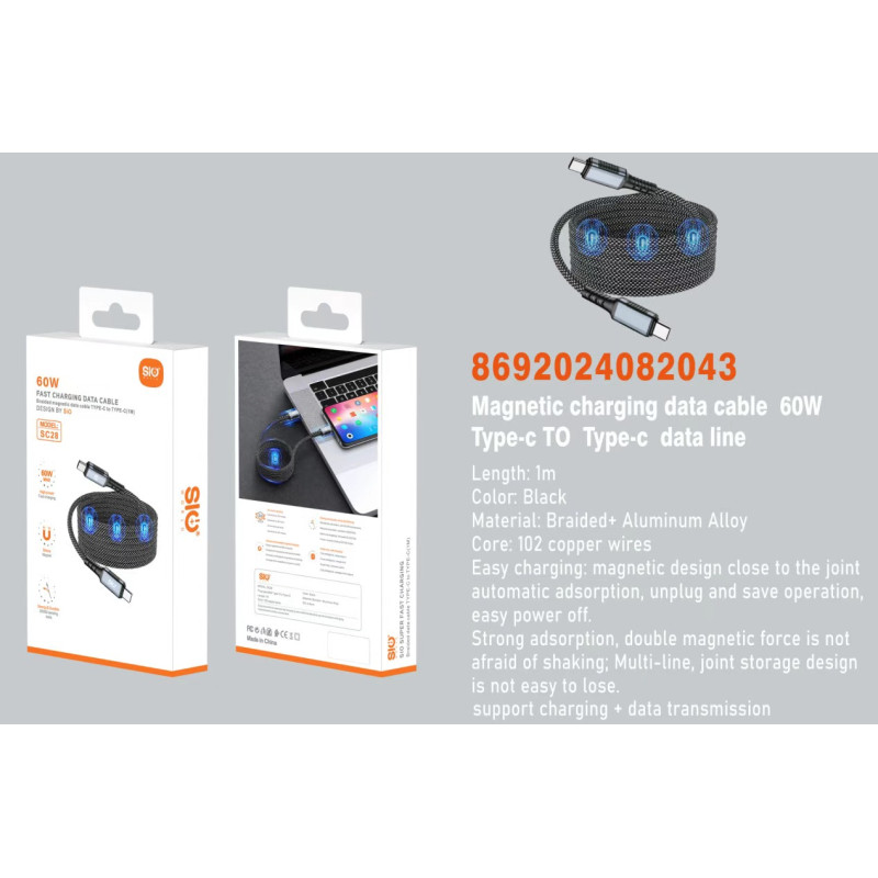 SC28 Cable de carga/datos rapida Type C a Type C 60W con magnetico de almacene facil.