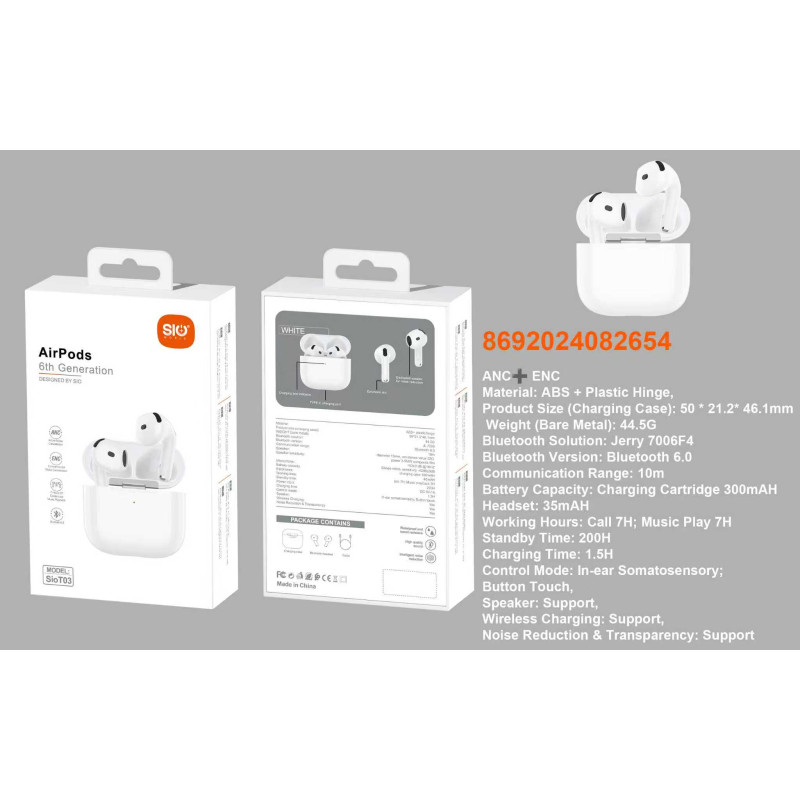 T03 Auriculares inalambricos TWS BT 6ºGeneracion 7h cancelacion de ruido tanto ANC como ENC tambien tiene modo transparencia para escuchar el ruido del alrededor.