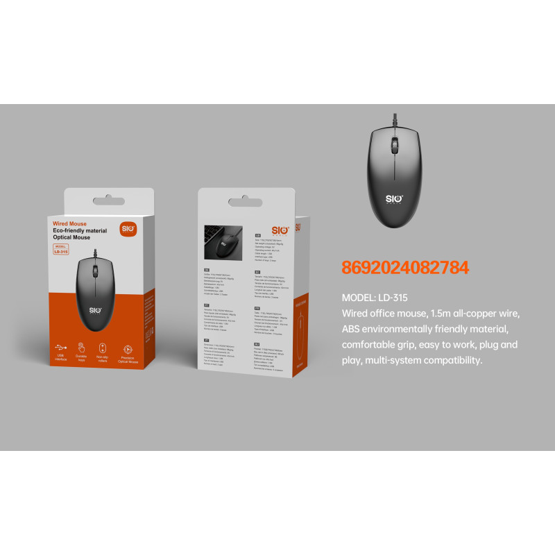Ratón de oficina con cable, cable de cobre de 1,5 m, material ABS ecológico, agarre cómodo, fácil de trabajar, enchufar y usar, compatibilidad con múltiples sistemas.