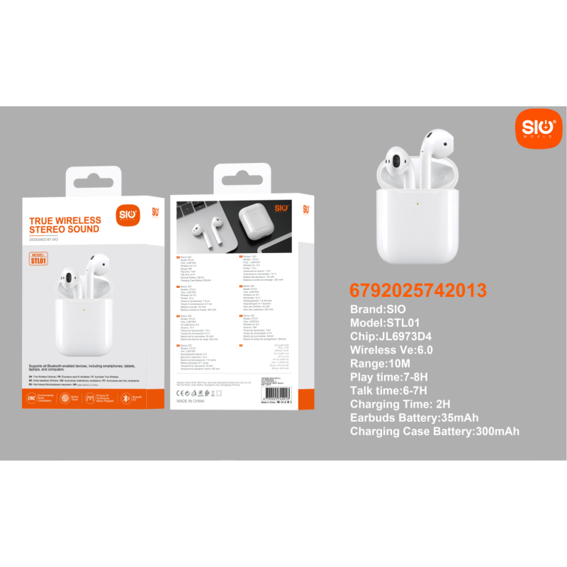 STL01 Auricular inalambrico TWS bluethoot con cancelacion de ruido ENC+hasta 8h de autonomia en un solo uso. Precio super economico!