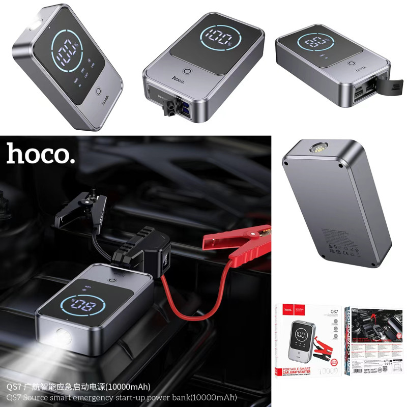 QS7 Arrancador de emergencias inteligente para coche 10000mAh con pinzas.