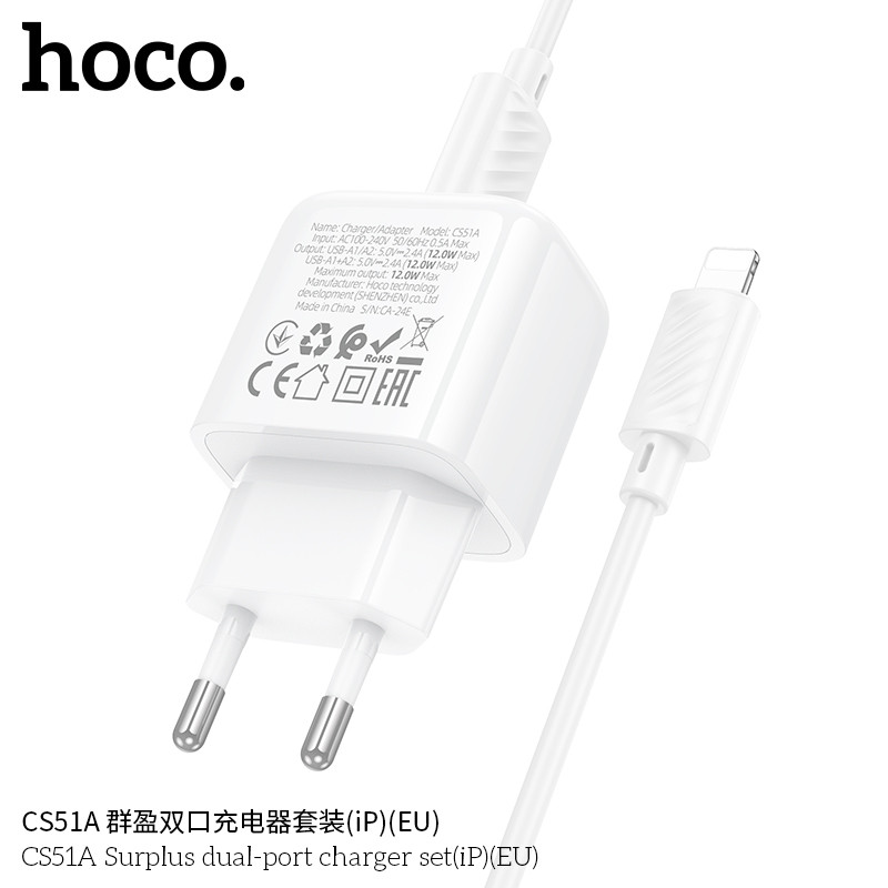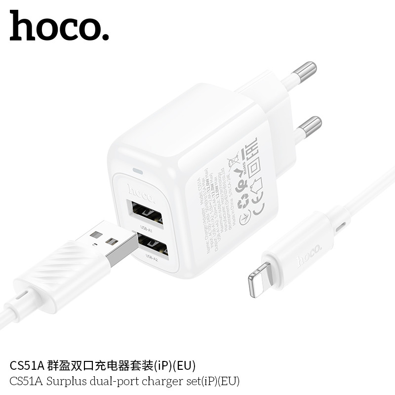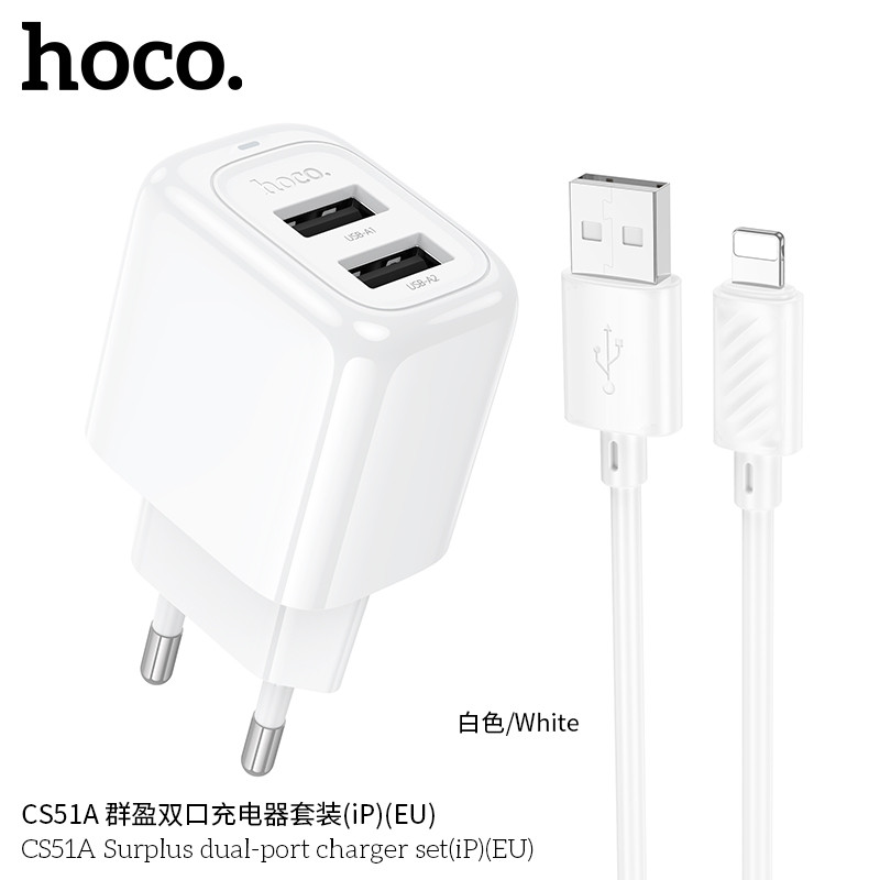 CS51A Cargador doble USB con cable USB-iP. Precio calidad!
