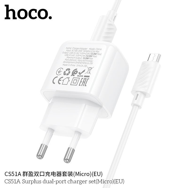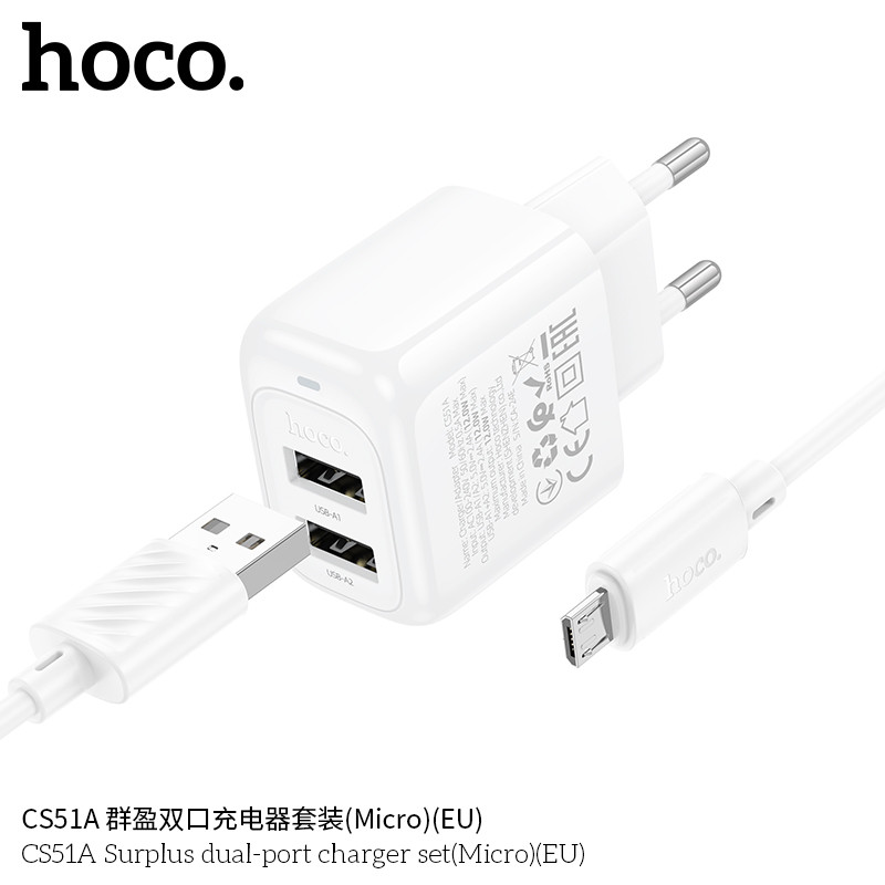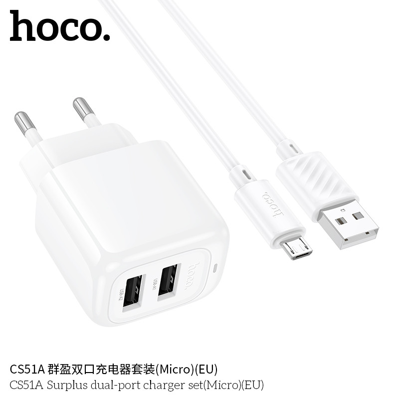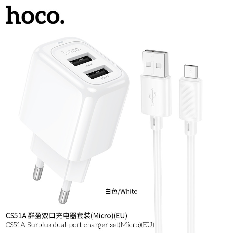 CS51A Cargador doble USB con cable USB-Micro. Precio calidad!