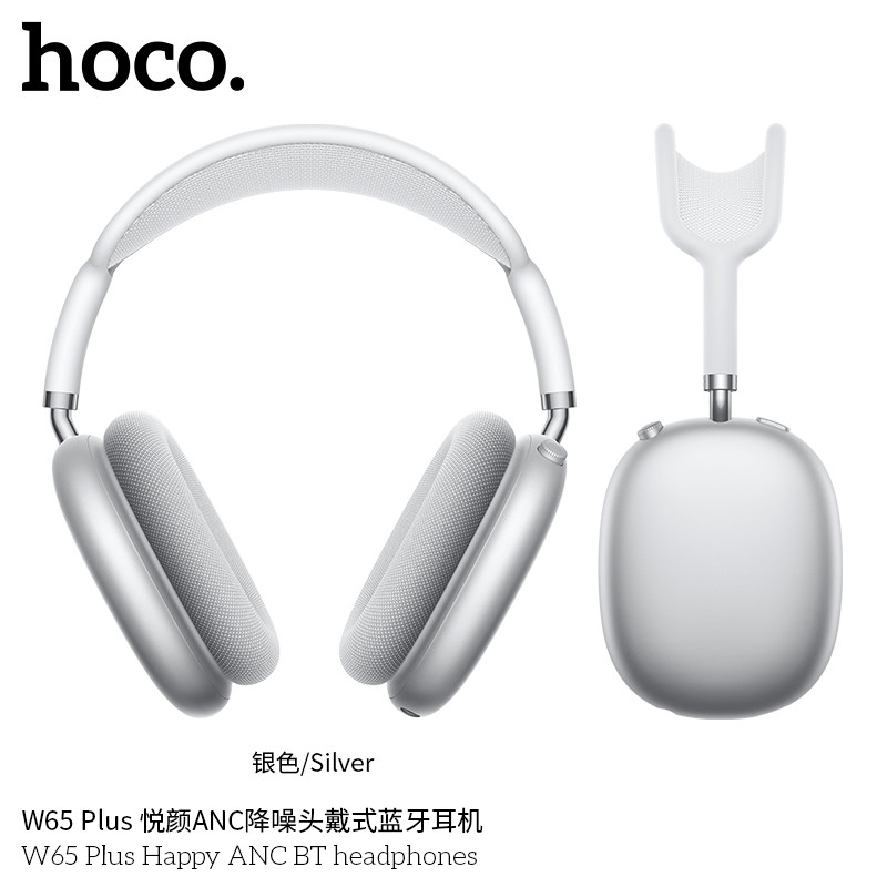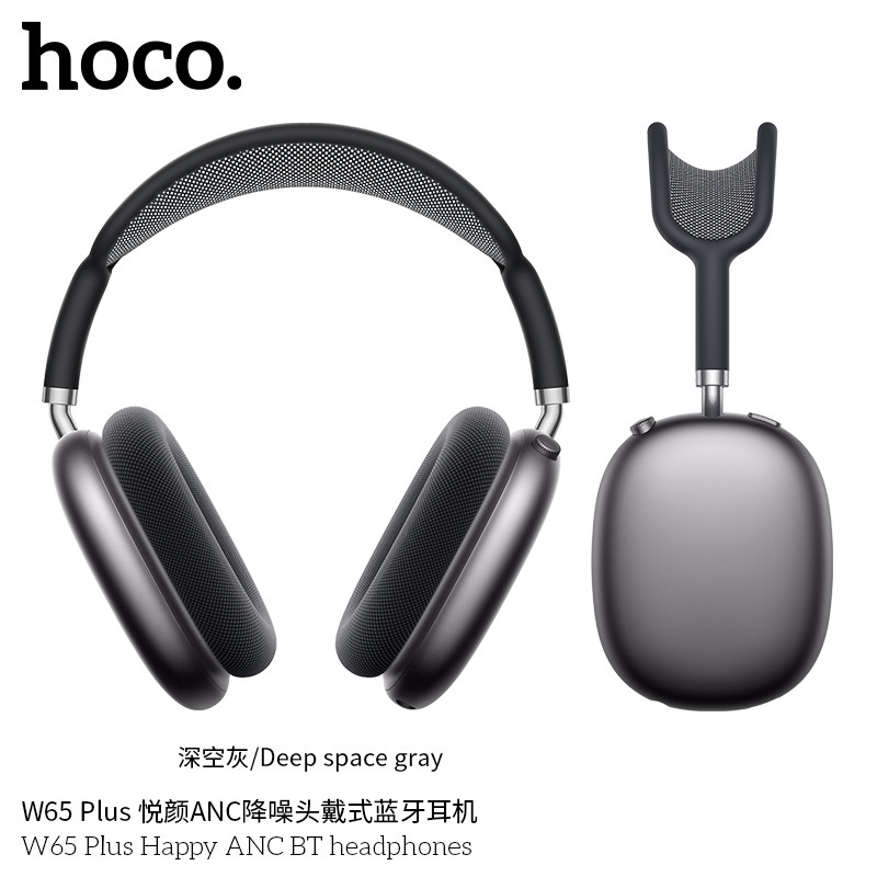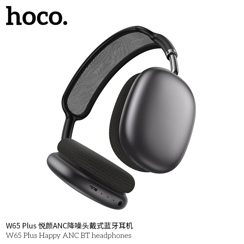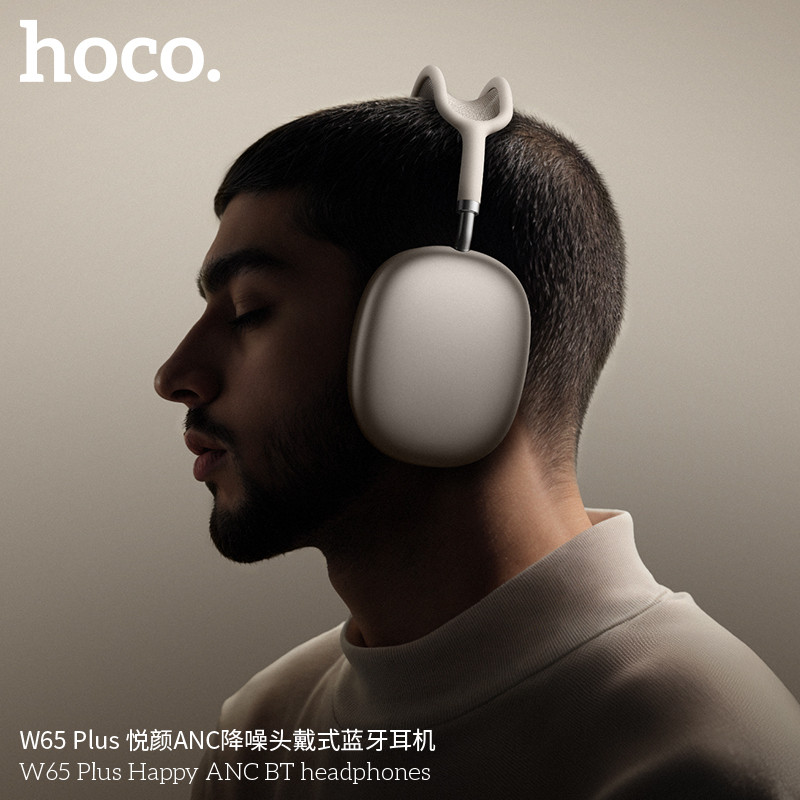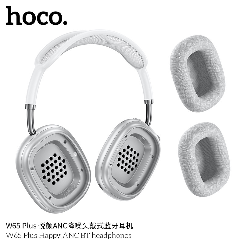 W65 Plus Auricular tipo diadema inalambrico Bluetooth con cancelacion de ruido y orejeras de tela recambiables.