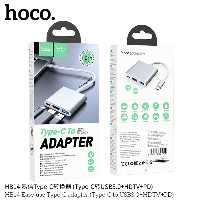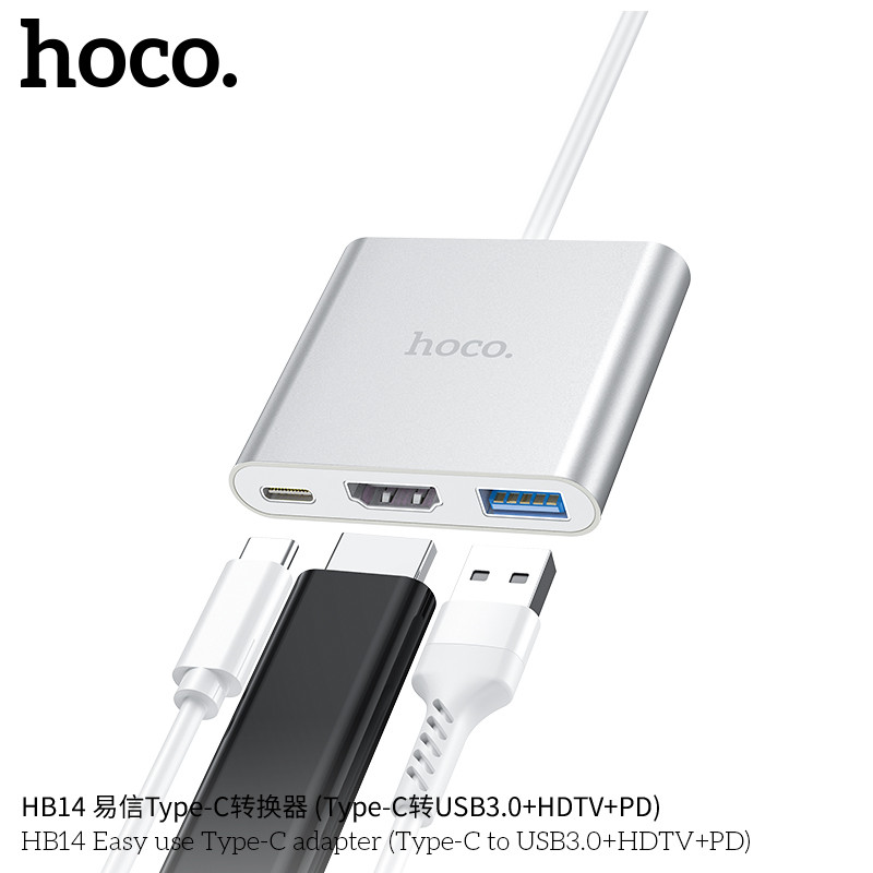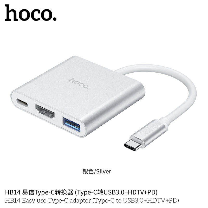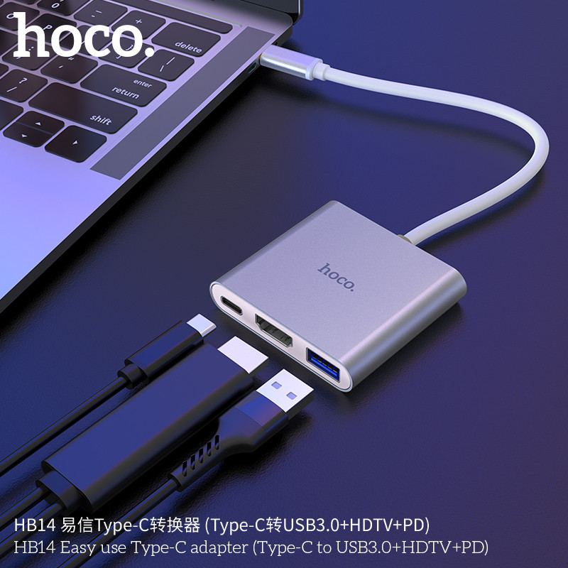 HB14 Adaptador de Type C 3 en 1, macho Type C a USB3.0+HDTV+PD.