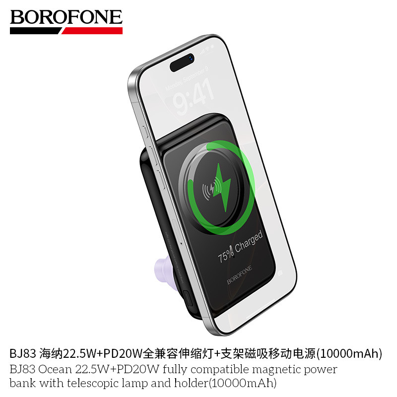 BJ83 Power bank inalambrico + soporte con carga rapida 22.5w+20w y luz ambiental.
