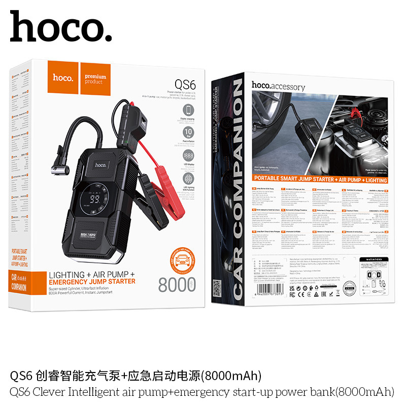 QS6 Bomba de aire inteligente con arrancador de emergencia y luz linterna.
