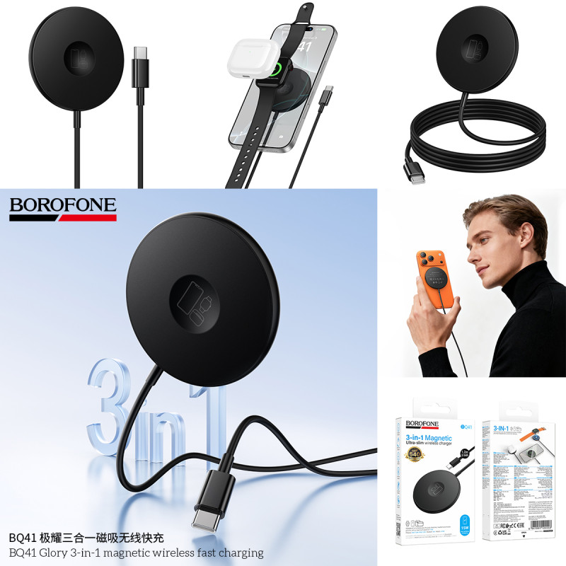 BQ41 Cargador inlambrico 3 en 1 magnetico (Movil, Reloj y Auricular).