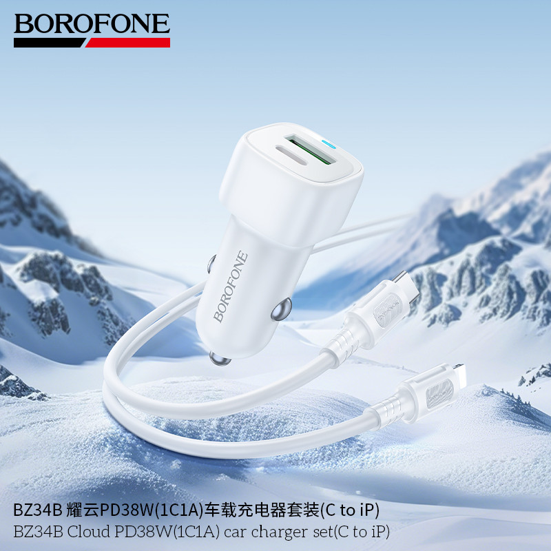 BZ34B Cargador para coche doble entrada 1C 1A con carga rapida PD38W + Cable Type C a iPhone. Precio Super Economico!