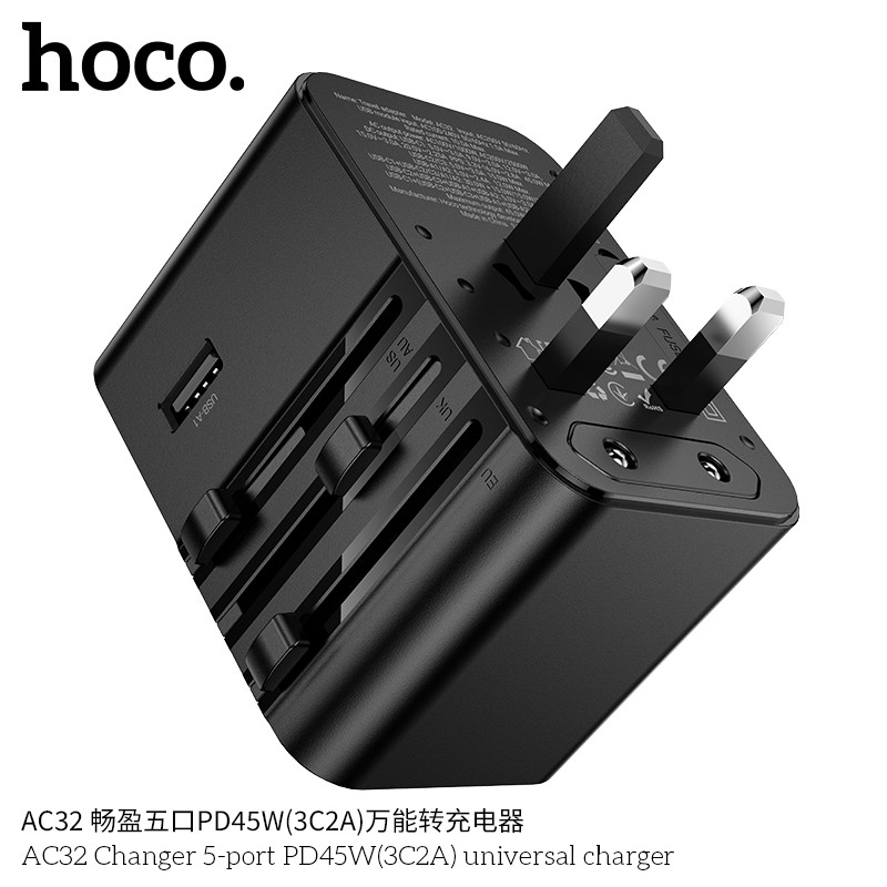 AC32 Enchufe universal de carga rapida 45W con 3 salidas Type C y 2 USB. Precio super economico!
