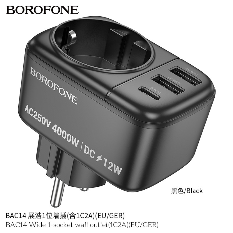BAC14 Enchufe parez con salida 1 Type C y 2 USB. Precio super economico!