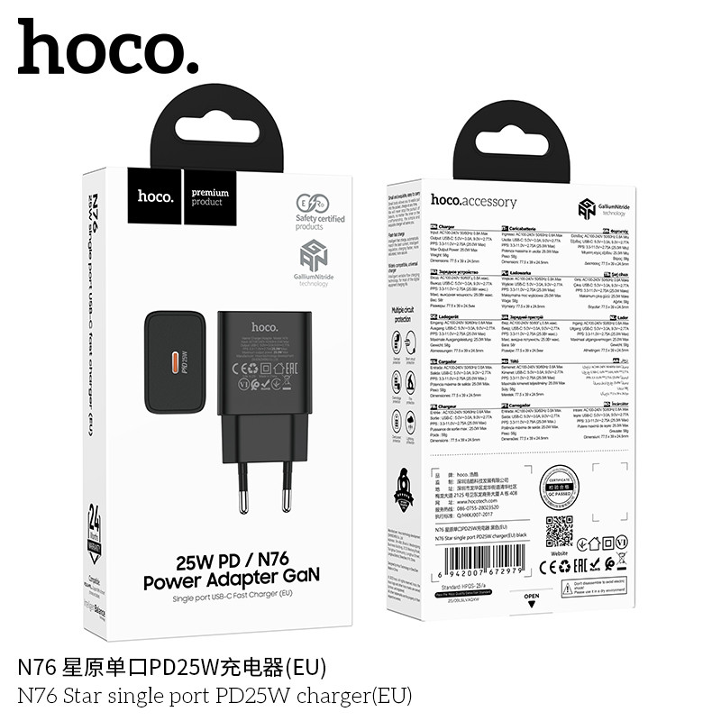 Hoco C147A Mini Cargador Rapido PD20W + QC3.0 (1C1A) Con Cable Type C - Type C
